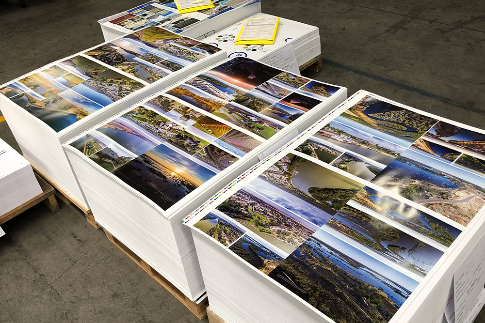The aerial landscape photography highlights the region’s lush farmlands with extensive vines, orchards and agriculture which are fed by the Murray’s valuable waters. When the high river comes these images capture the powerful beauty of a fast flowing river system where the river’s banks are broken and the floodplains enjoyed the glorious and vital benefits of those waters.